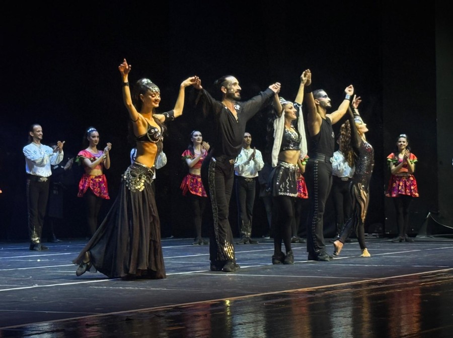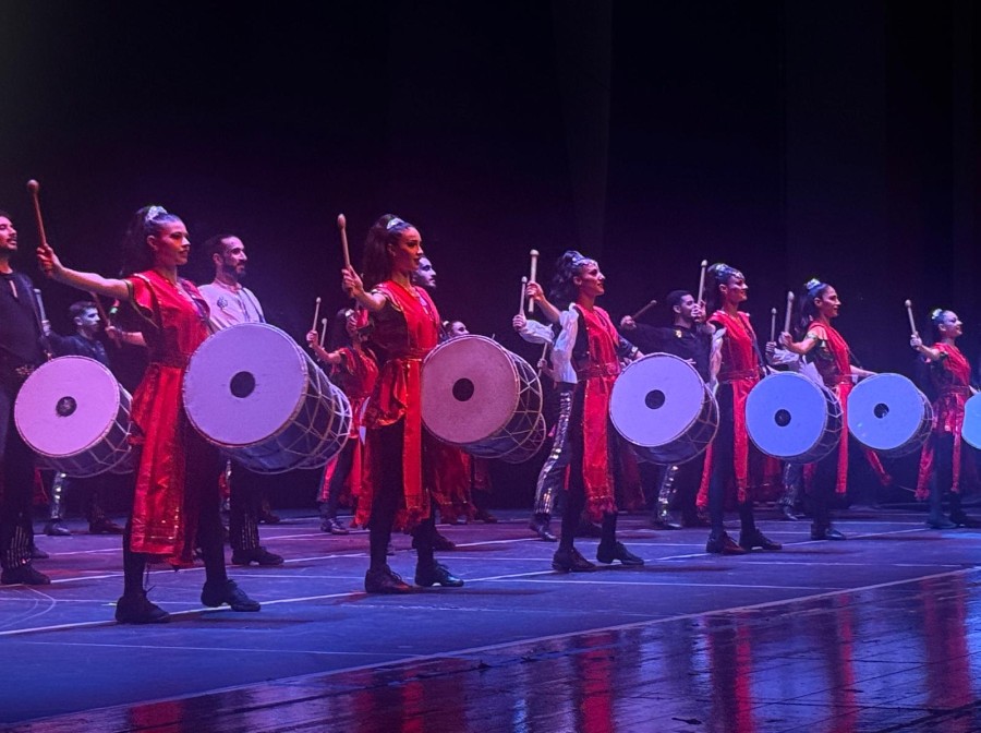 Gösteri topluluğunun seyirciye alkışlar eşliğinde tempo tutturması salonda coşkuyu artırdı.