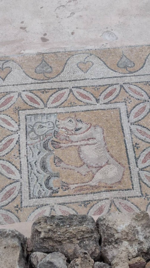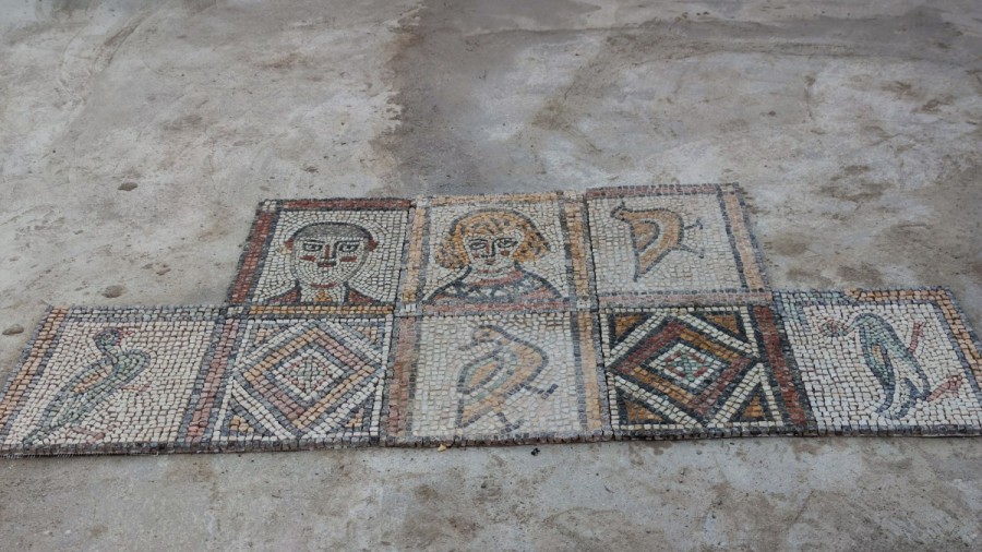 Şu an üstü koruma maksadıyla kapatılmış MS 6. yüzyıla tarihlenen kilise kalıntısında rengârenk mozaiklerle çizilmiş figürler hayranlık uyandırıcı. Bu mozaiklerde kadın, erkek, hayvan ve meyve figürleri yer alıyor. Figürlerin üzerinde ise Hıristiyan inancına göre cennetteki dört nehir "Phison", "Geon", "Euphrates" (Fırat), "Tigris"in (Dicle) isimleri yazıyor ve bu tür bir kompozisyonun Anadolu'da henüz bir örneği yok! Yine kilisede nehirden su içen bir boğa figürü görüyoruz, ancak boğa figürünün sudan yansıması bile grinin 6 farklı tonuyla resmedilmiş. Kilisenin biraz daha ilerisinde bulunan ve üstünün kapatılma çalışmaları süren "Roma konutunda" ise yine ilgi çekici figürler görülebiliyor. Mutfağı, şölen ve yatak odası bulunan konutta, yatak odasının zemininde evin sahibi çiftin "romantik" bir figürü, yanında ise hayvan resimleri bulunuyor. Figürlerde kullanılan mozaiklerin hepsi yerel taşlardan yapılma, o zamanın yerel sanatçılarının eserleri. Zaten antik kentin biraz daha ilerisinde bulunan taşocaklarından çıkarılan taşlar Anıtkabir'in yapımında da kullanılmış, yani taş konusunda bereketli bir nokta.