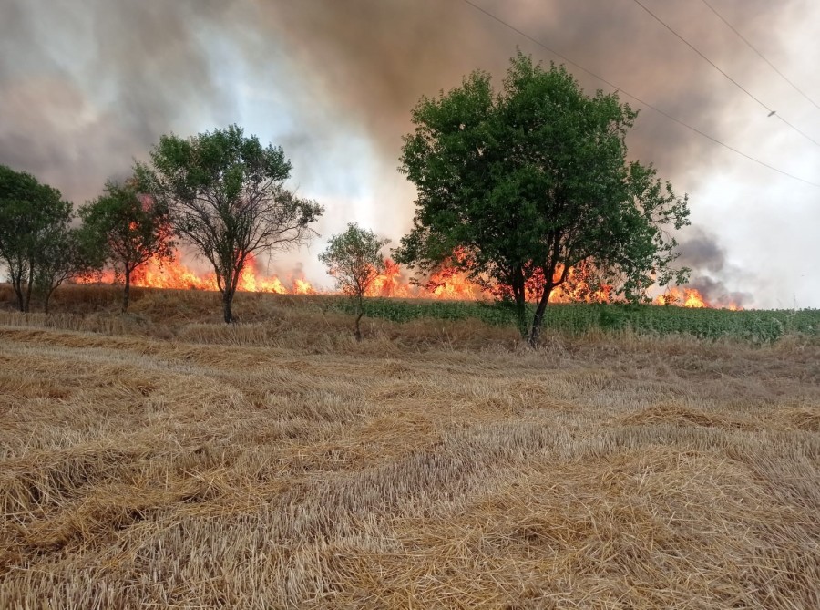 Kısa sürede büyüyen alevler, arazinin yanında bulunan buğday tarlasına sıçradı.