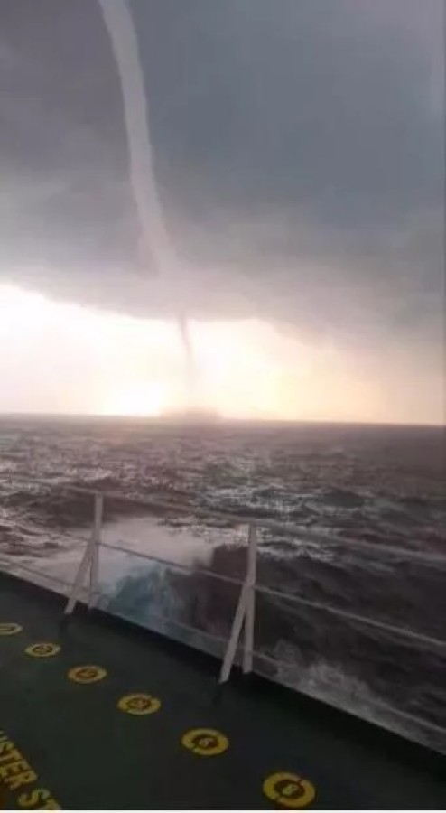 Bugüne kadar hep karadan görüntülenen Hortum, bu kez açıklardaki bir tankerdeki çalışan tarafından yakından kaydedildi.