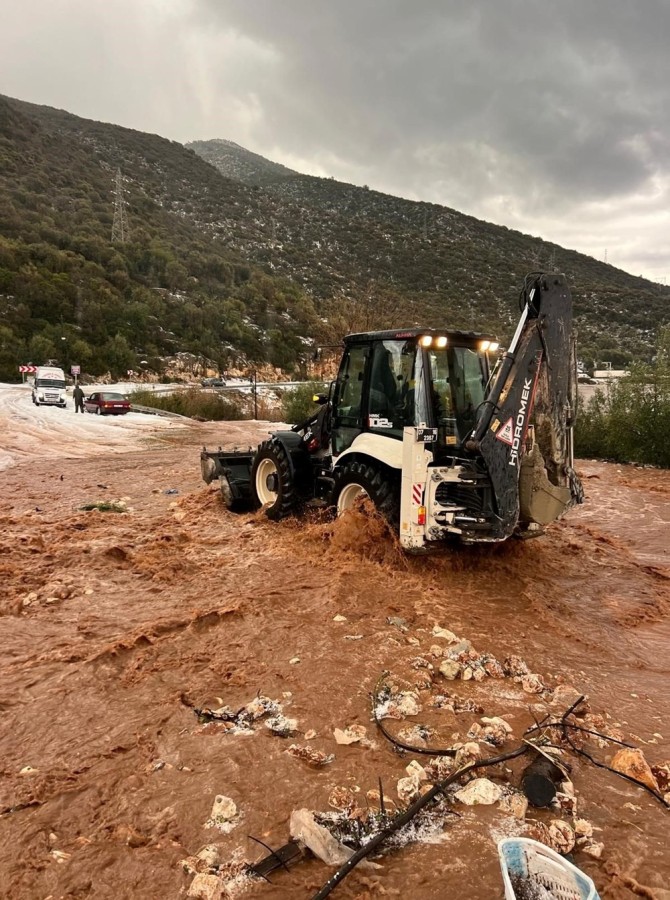 Antalya Büyükşehir Belediyesi ekipleri ise iş makineleriyle kapanan yolun açılması için çalışma başlattı.