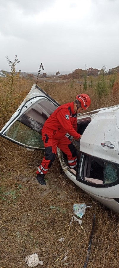 Balıkesir'in Savaştepe ilçesinde otobanda meydana gelen tek taraflı trafik kazasında şarampole uçan ve ters dönen otomobilde bulunan 3 kişi yaralandı. İtfaiye ekipleri araçtan yaralı çıkardıkları 3 kişiyi 112 Sağlık ekiplerine teslim etti.