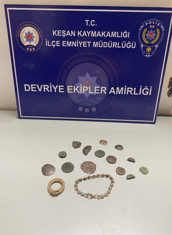 Edirne'de çeşitli suçlardan aranan M.K., üzerinde 14 parça tarihi eserle yakalandı.