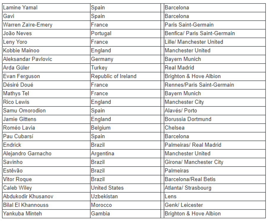 Sadece 01.01.2024 ve sonrasında doğan futbolcuların yer aldığı listede Arda Güler de aday gösterildi.
