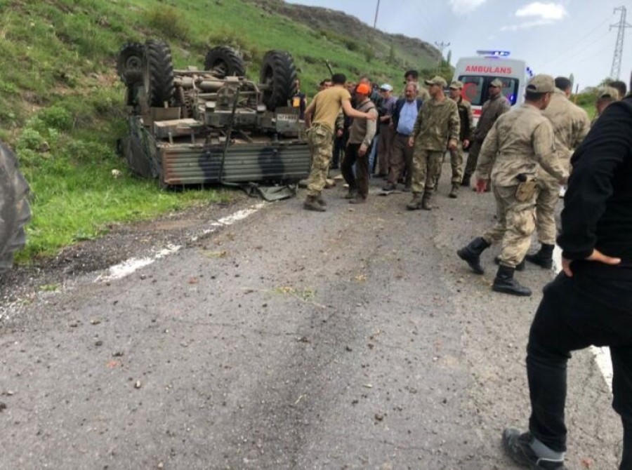 İçerisinde askerlerin bulunduğu araç, sürücüsünün direksiyon hakimiyetini kaybetmesi sonucu şarampole düşerek ters döndü.
