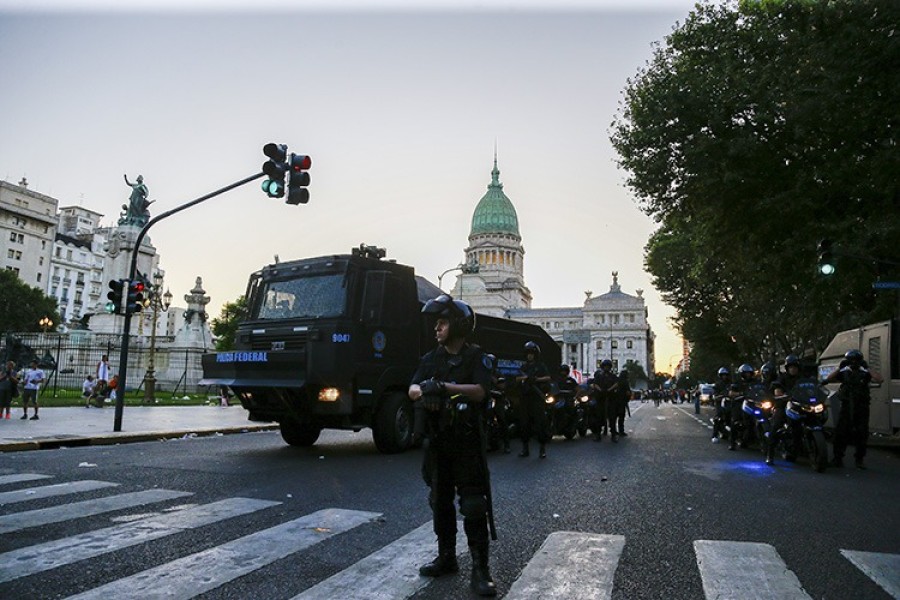 Başkent Buenos Aires'te Kongre önünde bir araya gelen kalabalık gruplar, hükümetin çıkarmaya çalıştığı "torba yasayı" protesto etti.
