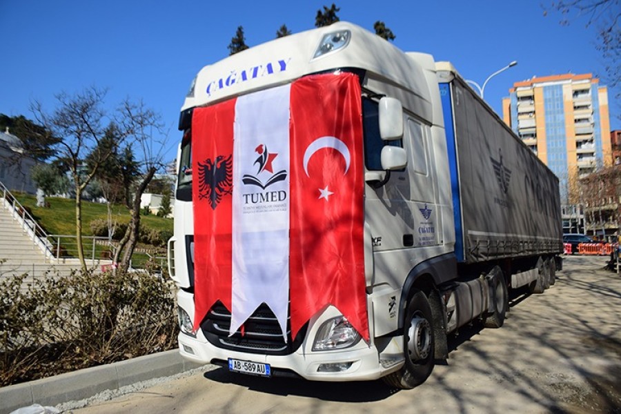 Türkiye'nin Tiran Büyükelçiliği koordinasyonunda bugüne kadar Arnavutluk'tan Türkiye'deki deprem bölgelerine 6 tır yardım gönderildi.
