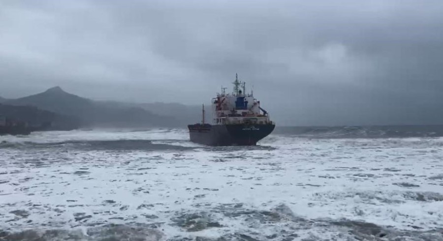 Gemi sabah saatlerinde fırtına ve dev dalgalar nedeniyle kıyıya sürüklenmeye başlarken, ardından kıyıya oturdu.