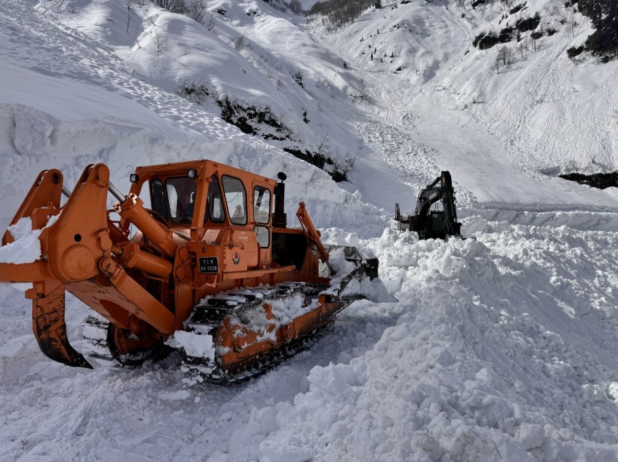İş makinesi operatörü Celal Genç de çalışmaların çığ düşen alanlarda uzun sürdüğünü ifade ederek, "Yolun üstünden gide gide tabanına inmeye çalışıyoruz. Görüldüğü gibi kademe kademe iniyoruz. Dozer ve ekskavatörle aynı anda çalışıyoruz." diye konuştu.
