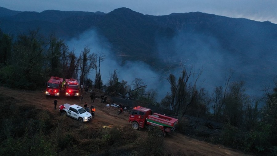 "Yangın geniş bir alanda gibi görünse de 5 hektar gibi. Orman varlığı açısından çok ciddi bir zararımızın olduğunu düşünmüyoruz, örtü yangını şeklinde. Bazen azalıyor hatta bitecek gibi oluyor ama tekrar artabiliyor rüzgarın yönüne göre. Söndürmek için bütün arkadaşlar var güçleriyle çalışıyor."