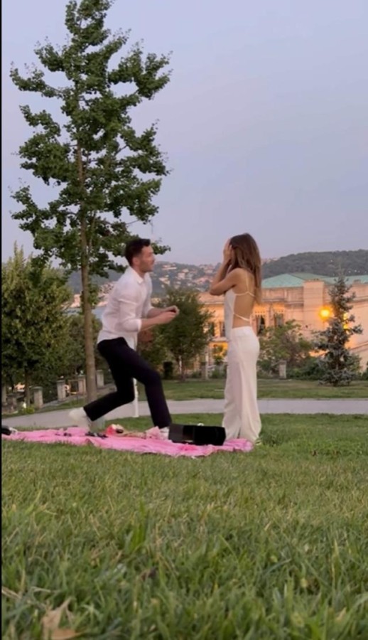 Sevgilisiyle pikniğe çıkan Aslı Sümen, beklenmedik anda gelen yüzüğü görünce şaşkına döndü.