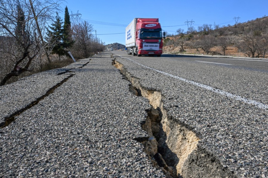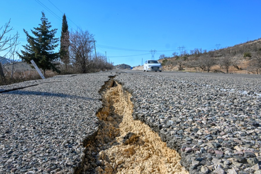 Kentte önemli hasara yol açan depremler sırasında kara yollarında birçok noktada metrelerce uzunluğunda yarıklar oluştuğu gözlemleniyor.