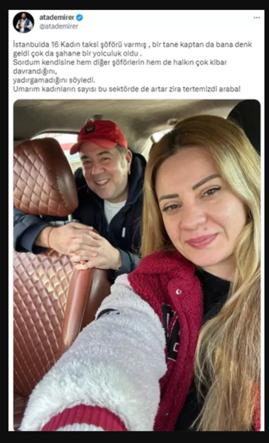 İstanbul'daki 16 kadın taksi şoföründen biriyle karşılaştığını belirten Ata Demirer, fotoğrafı Twitter'da paylaşmayı ihmal etmedi.