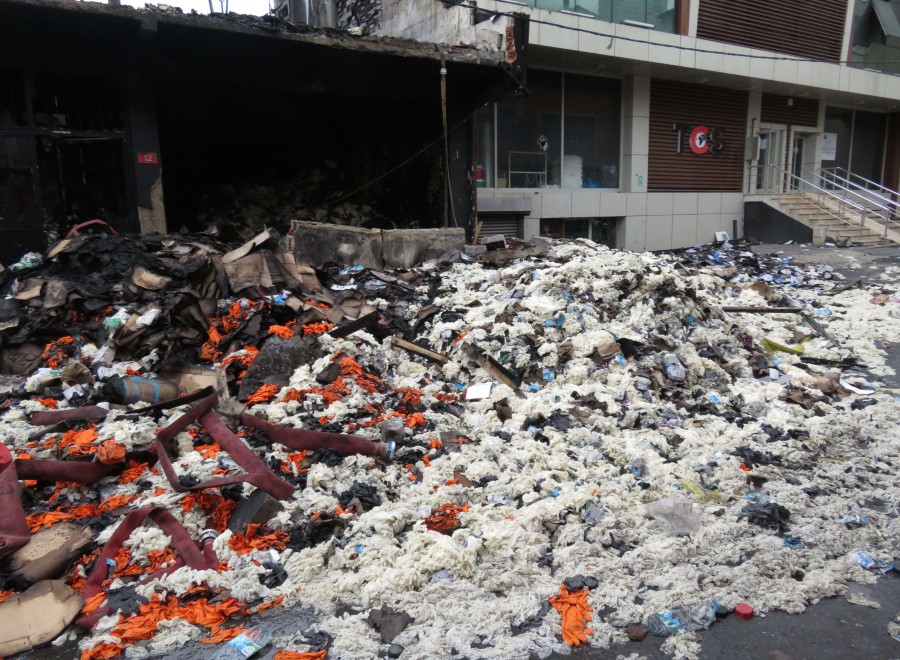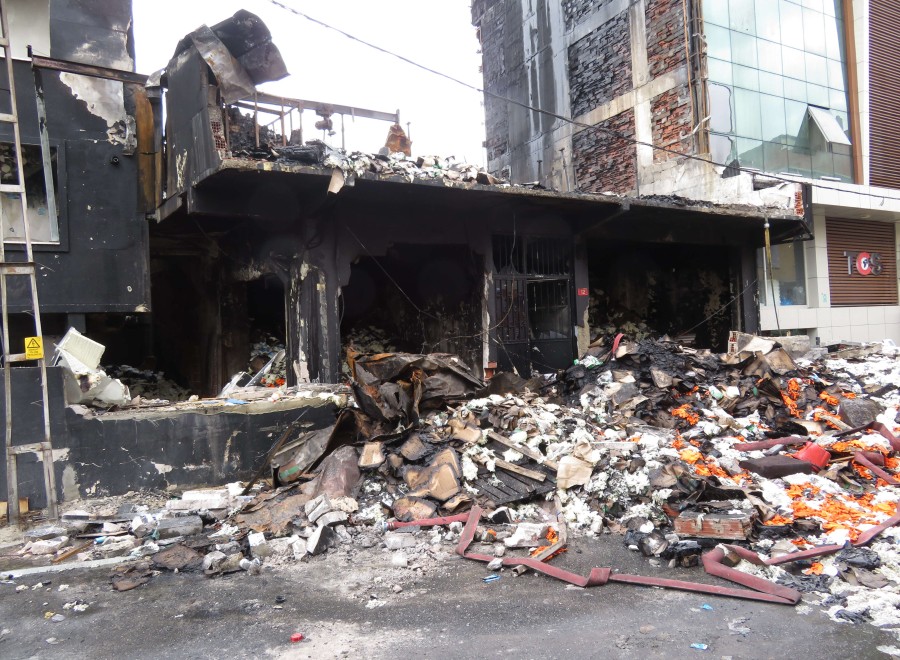 İş yeri hasar gören medikal eldiven deposu sahibi Serdar Güneş, "Spor salonundan çıkan yangınla bize ulaşmasın diye müdahale ettik ama alevler binalara sıçrayarak büyüdü. Burada medikal malzeme vardı. 30-35 milyon liralık zarar oluştu. Depoda 30-35 Milyon Liralık eldiven vardı. Keşke olmasaydı" dedi.