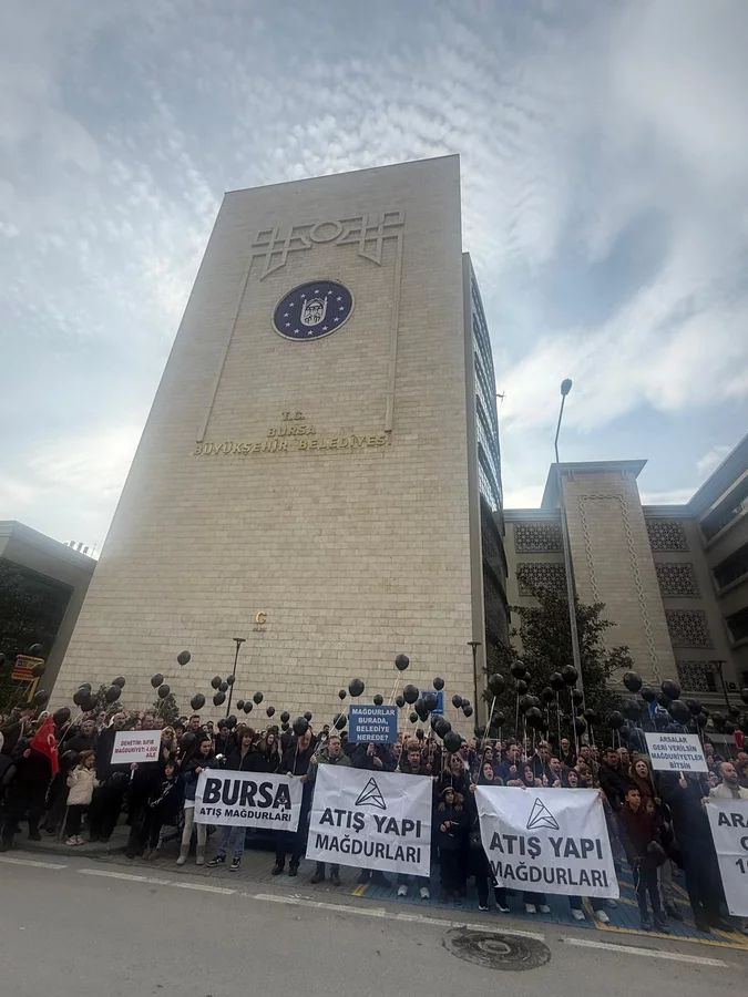 Atış Yapı mağdurları bugün Bursa Büyükşehir Belediyesi önünde eylem yaptı. Eski Başkan Alinur Aktaş döneminde yapılan arazi satışlarındaki sürece tepki gösterildi.
