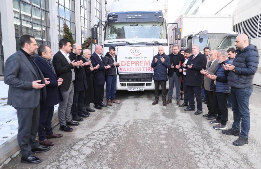 Ankara Ticaret Odası'nın (ATO) İçişleri Bakanlığı Afet ve Acil Durum Yönetimi Başkanlığı (AFAD), Ankara Valiliği ve Türkiye Odalar ve Borsalar Birliği (TOBB) ile koordinasyon içinde oluşturduğu "ATO Deprem Yardım Masası"na ATO üyeleri tarafından ulaştırılan yardımlar, tırlara yüklenerek, Başkan Baran ve Yönetim Kurulu üyelerinin dualarıyla deprem bölgesine doğru yola çıkarıldı.