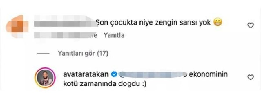 Avatar Atakan bir Instagram kullanıcısının, "Son çocukta niye zengin sarısı yok?" sorusuna verdiği yanıtla gündem oldu.