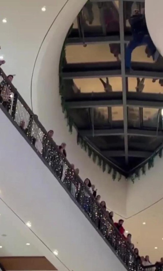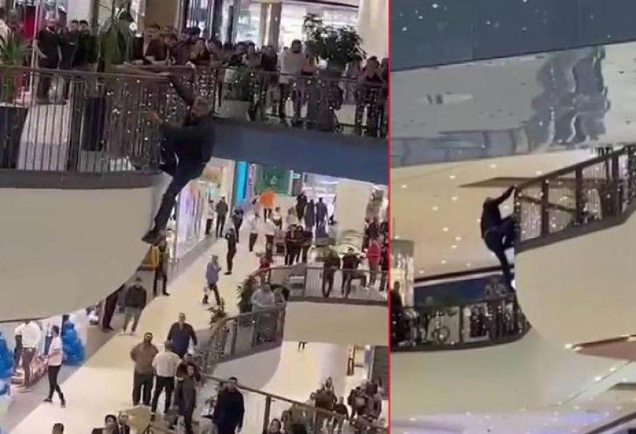 Öte yandan, şahsın AVM'nin 3'üncü katından atladığı anlar cep telefonu kamerasına yansıdı.