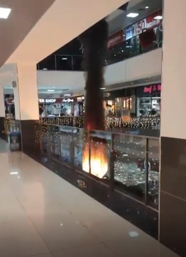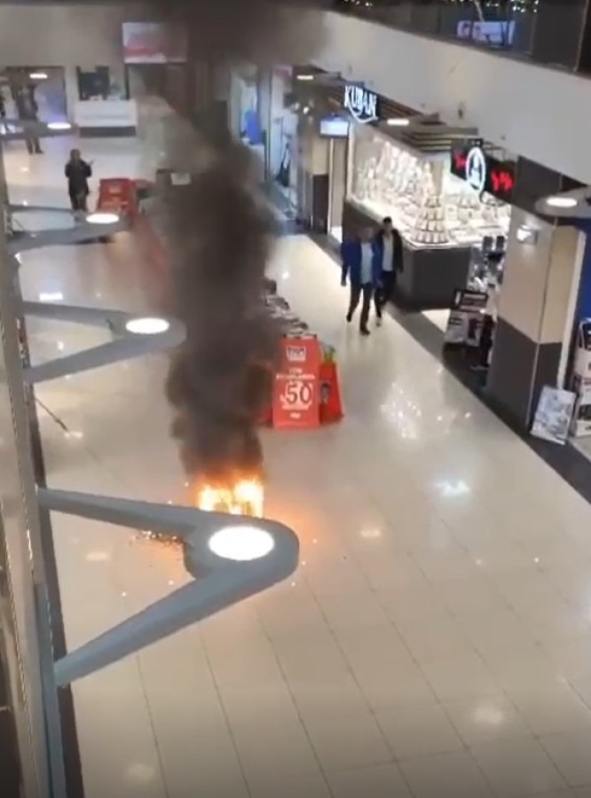 O anlar, cep telefonu kamerasıyla görüntülenirken, yangın da güvenlik görevlileri tarafından söndürüldü.