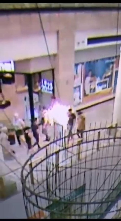Bayrampaşa'daki bir alışveriş merkezinde dolaşan Doğukan B. 'nin kolunda taşıdığı çanta bir anda alev almaya başladı.