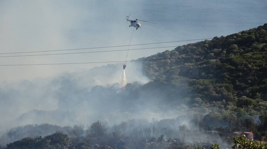 Ekipler yangını söndürmek için havadan ve karadan çalışmalarını sürdürüyor.