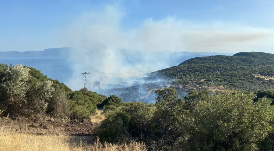 Çanakkale'nin Ayvacık ilçesine bağlı Behramkale köyü yakınlarında makilik alanda alevler yükseldi.