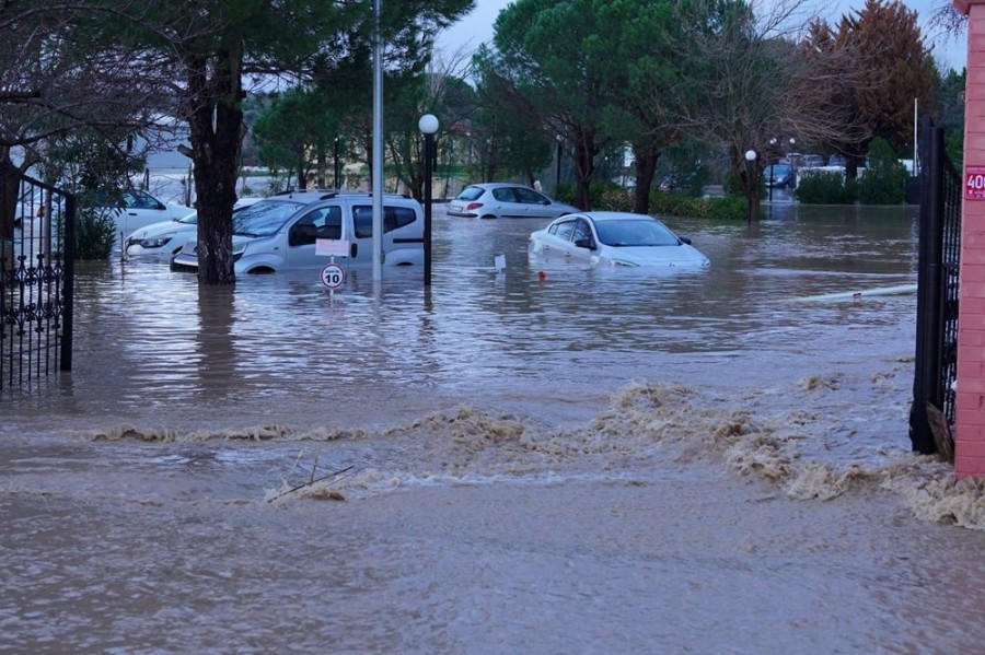 İlçede sabahın erken saatlerinden itibaren başlayan sağanaktan dolayı metrekareye 70 metreküp yağış düştü.