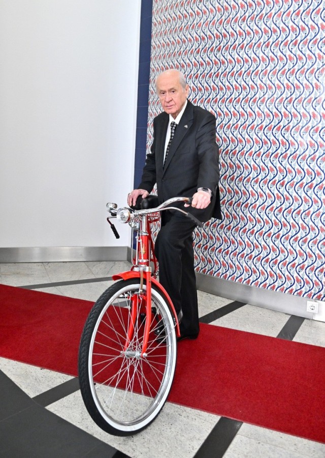 MHP lideri Devlet Bahçeli, '58'inci Cumhurbaşkanlığı Bisiklet Turu'nu bisikletli pozuyla kutladığı görüldü.