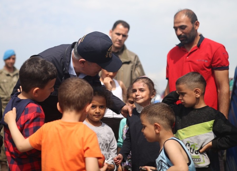 Yetkililerden buralardaki faaliyetlere ilişkin de bilgi alan Akar, çocuklara oyuncak ve çikolata hediye etti.