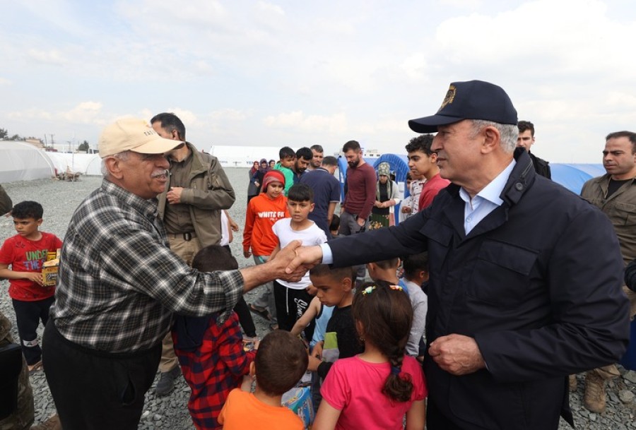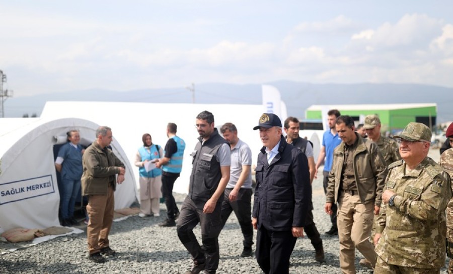 Akar, beraberinde Genelkurmay Başkanı Orgeneral Yaşar Güler ile Kahramanmaraş merkezli depremlerin etkilediği Hatay'daki faaliyetlerini sürdürüyor.