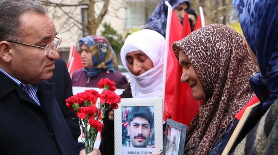 Deprem bölgesinde görevli koordinatör bakan olan Adalet Bakanı Bekir Bozdağ, bin 306 gündür Halkların Demokratik Partisi (HDP) Diyarbakır İl Başkanlığı önünde evlatlarını PKK ve siyasi uzantısı olduğunu ileri sürdükleri HDP'den isteyen anneleri ziyaret etti.
