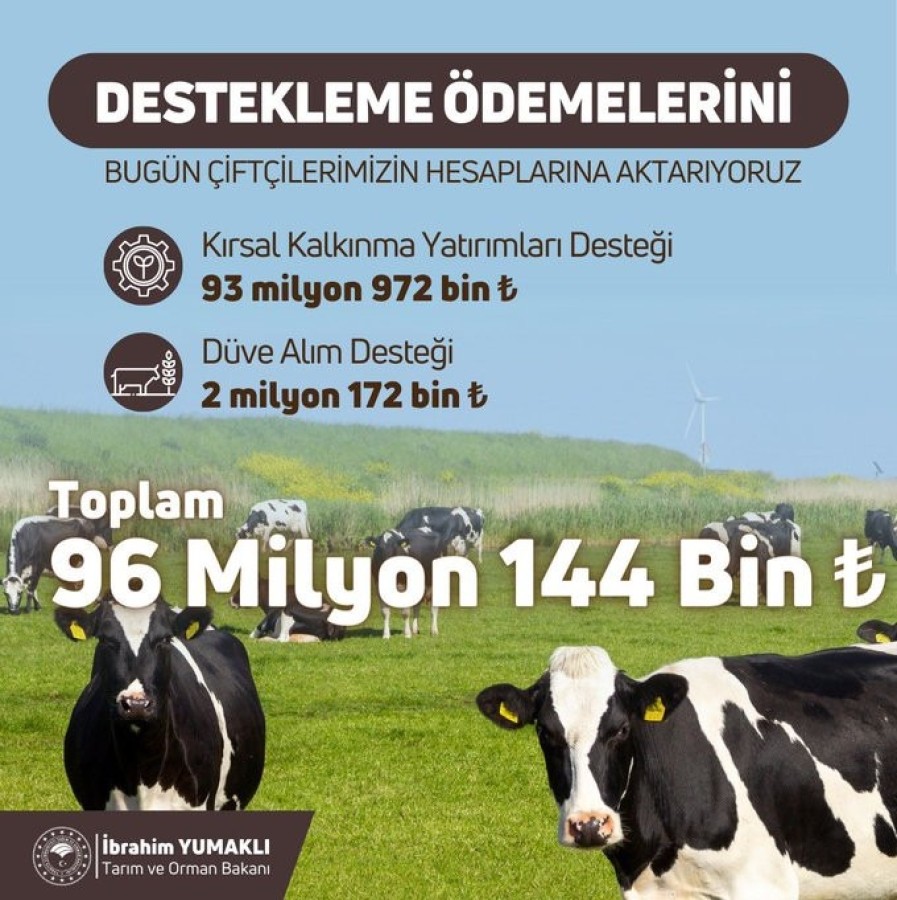 2 milyon 172 bin TL ise Düve Alım Desteği'ne yapılacak.