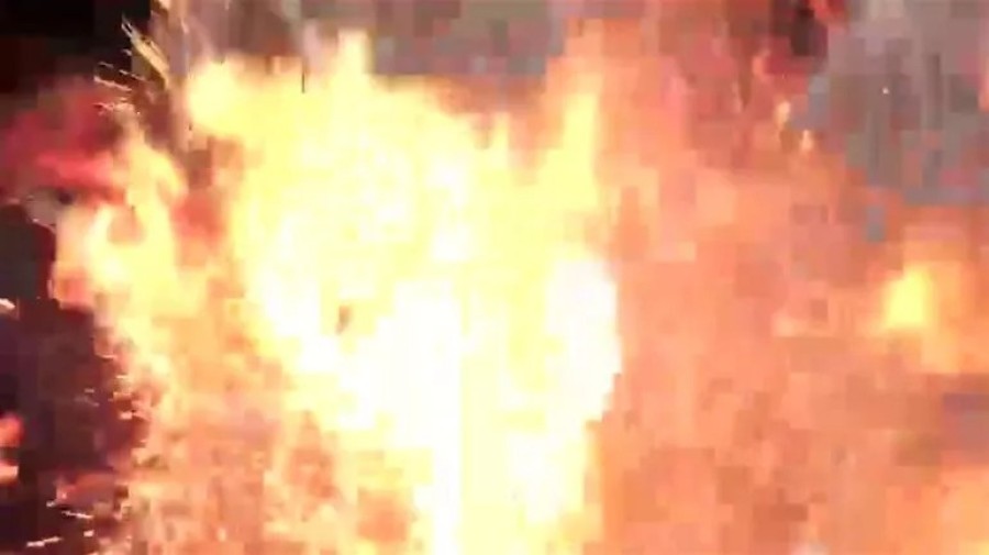 Hatay'da Sağlık Bakanı Fahrettin Koca ile sağlık çalışanlarının sohbeti sırasında önlerinde yakılan ateşteki kor parladı. Kimsenin yaralanmadığı olay anı fotoğraflara yansıdı.