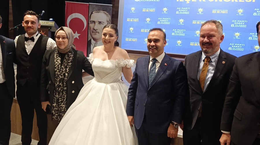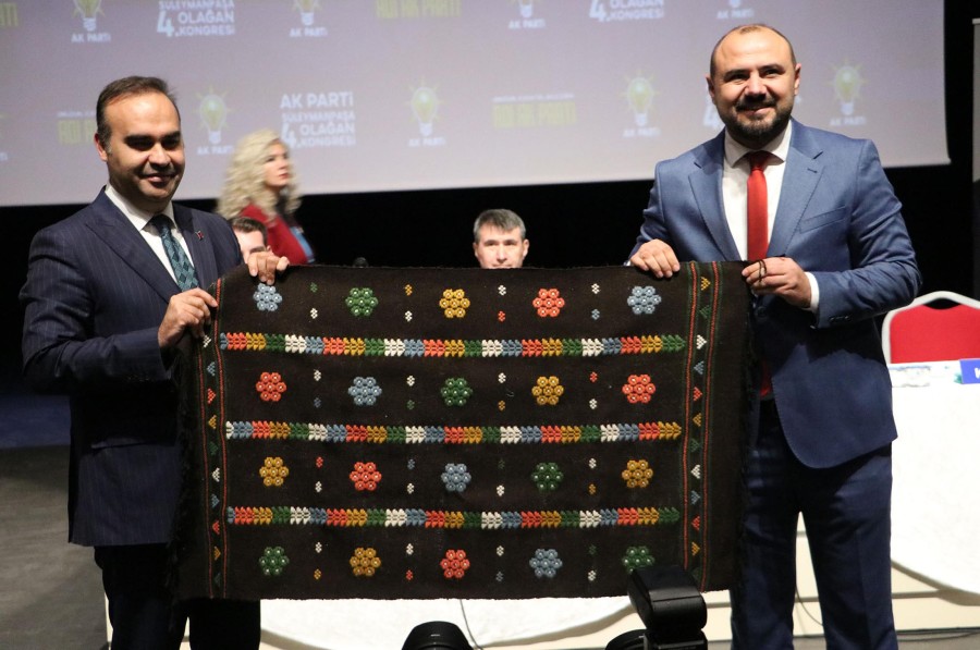 Bakan Kacır, Saray ilçesinde gerçekleşen kongreye bu akşamki düğün öncesi gelin ve damatlıkla gelen Melike- Mert Alpak çifti ile yakından ilgilenip, fotoğraf çektirdi. Süleymanpaşa'da ise AK Parti İlçe Başkanlığına seçilen Nusret Mandacı, Kacır'a Karacakılavuz dokuma halısı hediye etti.