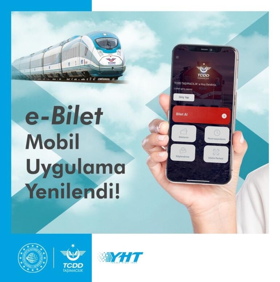 Ulaştırma ve Altyapı Bakanlığı, Türkiye Cumhuriyeti Devlet Demiryolları (TCDD) Taşımacılık Genel Müdürlüğü tarafından işletilen yüksek hızlı, ana hat ve konvansiyonel trenler için bilet satışı yapılan e-bilet mobil uygulama sisteminin yenilendiğini açıkladı.