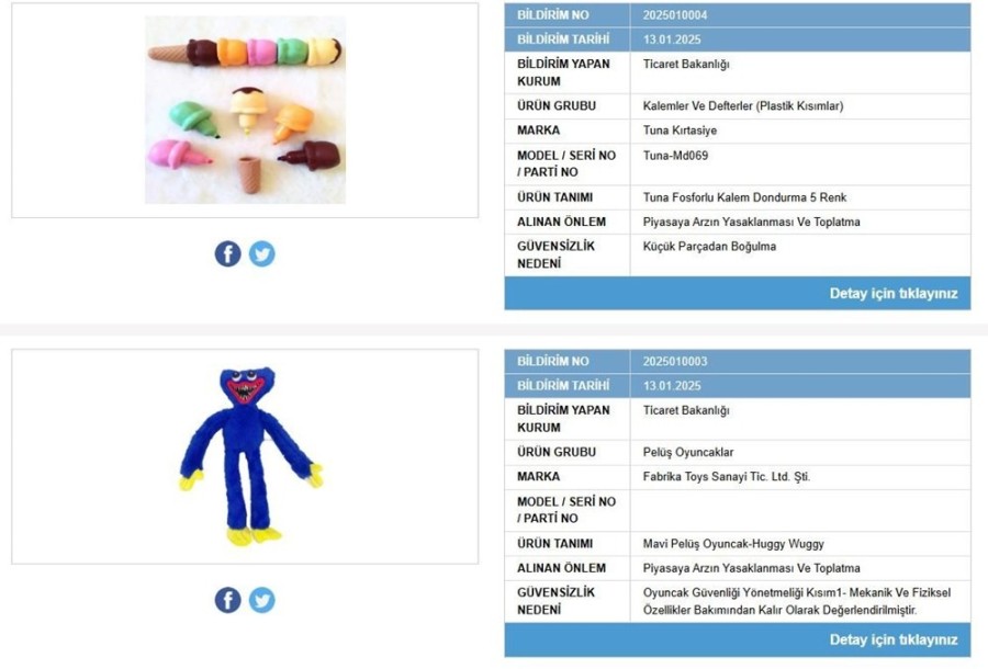 Bakanlığın son açıklamasında iki ürün için piyasadan toplatılma kararı verildi.