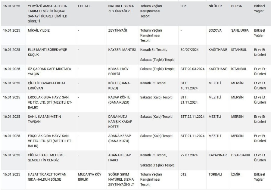 Tarım Bakanlığı'nın 2 Ekim 2024'ten bu yana yayınladığı taklit veya tağşiş yapılan gıdalar listesine 16 Ocak 2025'te 30 yeni ürün eklendi