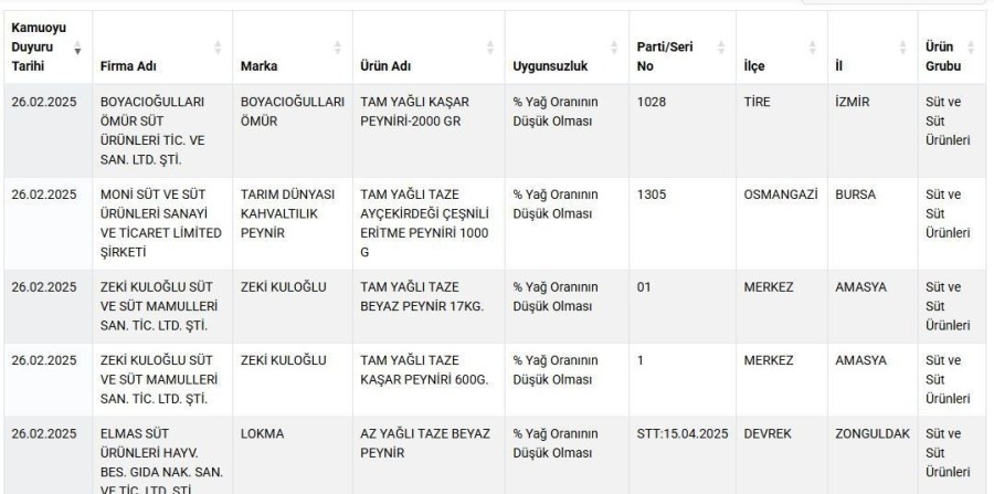 Vatandaşların sağlıklı gıdaya erişmesi için Tarım ve Orman Bakanlığı yaptığı denetimler sonrası uygunsuz olan ürünleri ifşa etmeye devam ediyor.