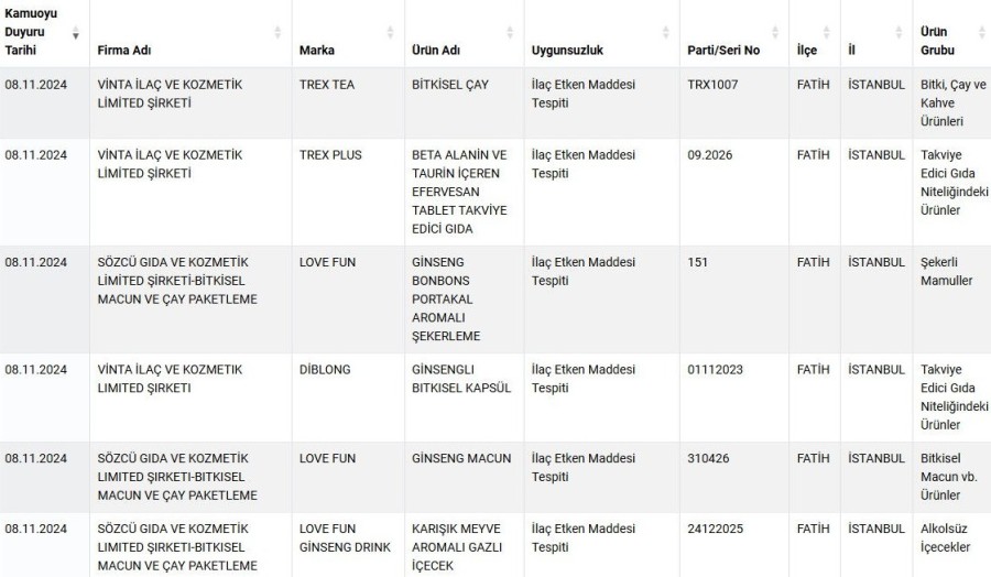 8 KASIM TAKLİT VE TAĞŞİŞ YAPILAN ÜRÜNLERİN LİSTESİ: