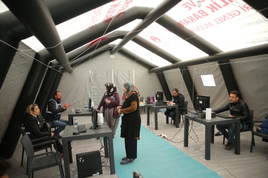 "Asrın felaketi" olarak nitelenen Kahramanmaraş merkezli depremlerden etkilenen Osmaniye'de Çevre, Şehircilik ve İklim Değişikliği Bakanlığınca farklı noktalarda konuşlandırılan çadırlarda görevli uzmanlar depremzedelerin sorularını cevaplıyor.