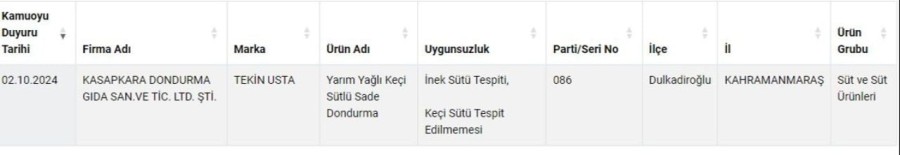 Bakanlık, markanın yarım yağlı keçi sütlü sade dondurmasını inceleyerek inek sütü tespit ederken, keçi sütü tespit edemediğini belgeledi. Ayrıca, firmanın keçi sütlü dondurma diyerek vatandaşa topunu 75 liradan satması da dikkat çekti.