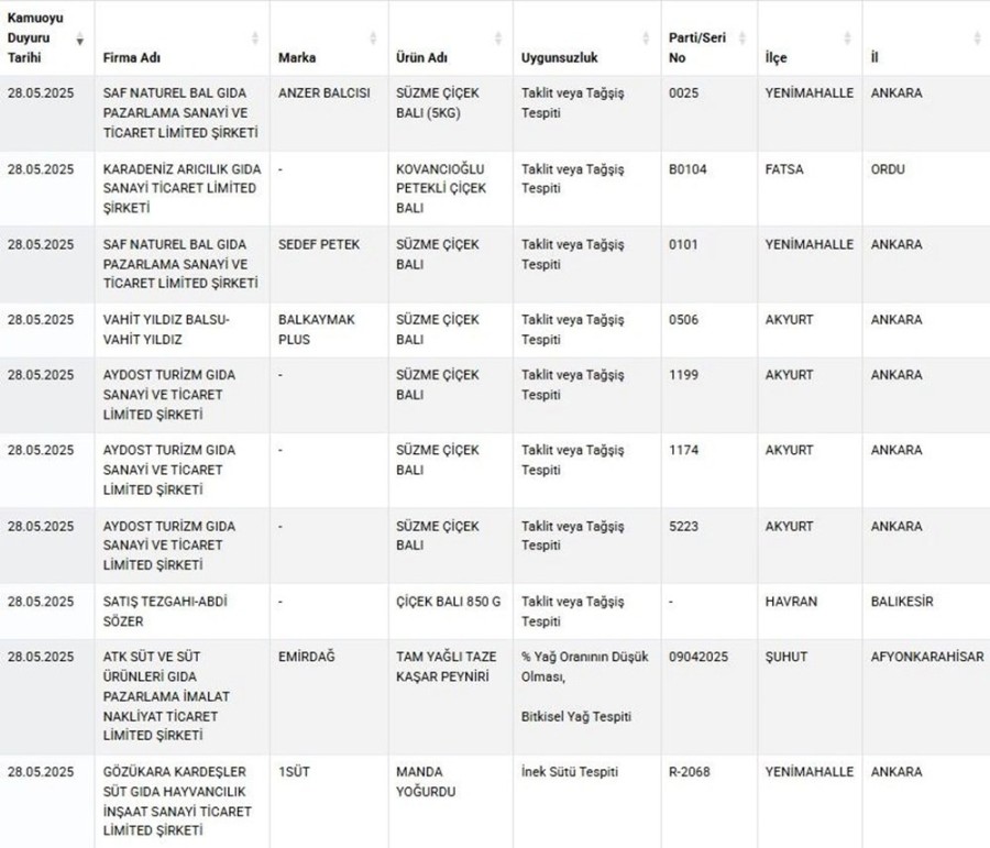Herkesin ilgisini çeken sağlığı tehlikeye atan ve taklit-tağşiş yapılan ürünlere her geçen gün yenisi ekleniyor. Vatandaşların sağlıklı gıdaya erişmesi için Tarım ve Orman Bakanlığı yaptığı denetimler sonrası uygunsuz olan ürünleri ifşa etmeye devam ediyor.