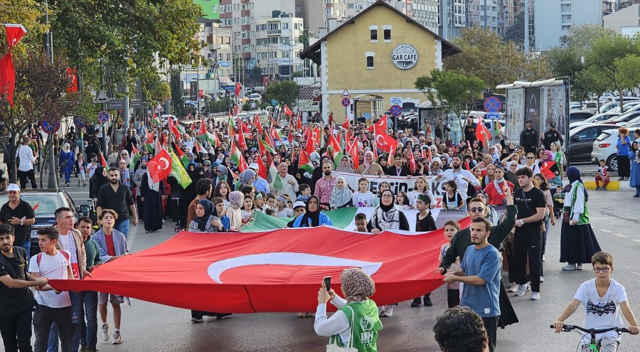 Yürüyüş, Bandırma İdo önünden başlayarak Cumhuriyet Meydanı'na kadar devam etti. Ellerinde Türk ve Filistin bayrakları taşıyan göstericiler, İsrail'in saldırılarını kınayan sloganlar attı.