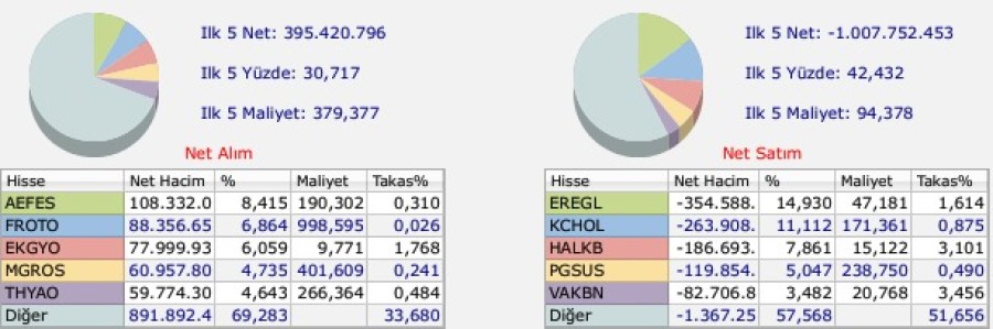 ABD'li yatırım bankası Bank of America'nın Borsa İstanbul'da bugün hacim bazlı alım ve satım yaptığı hisseler ise şu şekilde sıralandı: