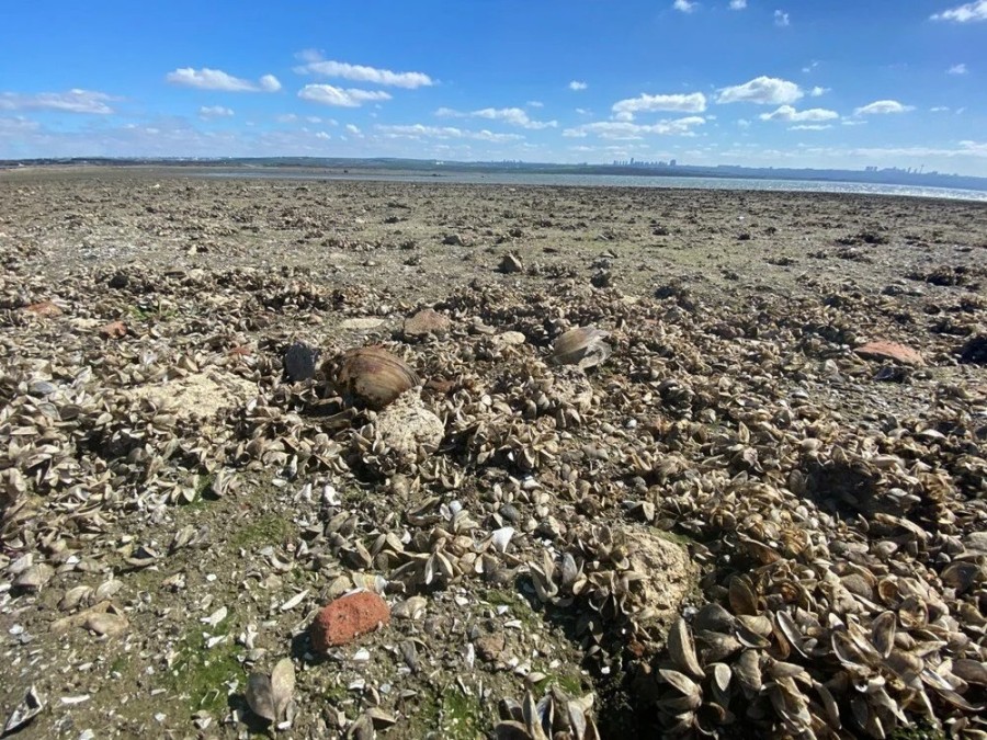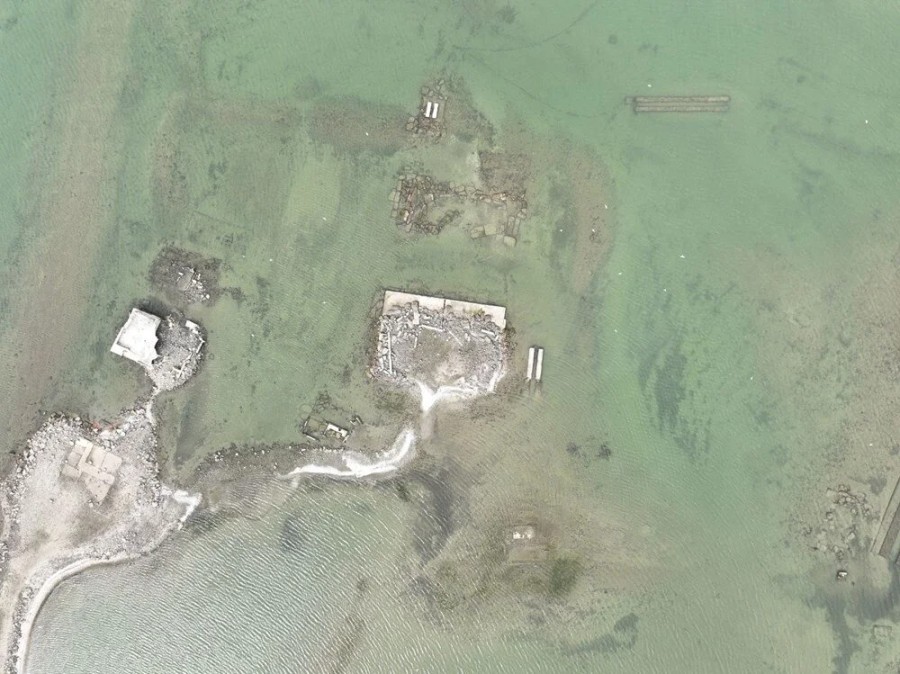Suların çekilmesiyle birlikte gölün dibindeki deniz kabukları, göl içinde bulunan yapıların kalıntıları da ortaya çıktı.