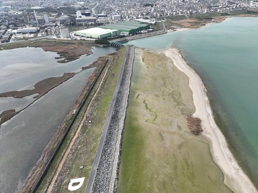 Kış mevsimi boyunca beklenen yağmur ve kar yağışının gelmemesi nedeniyle geçen yıl mart ayında yüzde 94.5 doluluk oranı olan Büyükçekmece Baraj Gölü'ndeki su oranı yüzde 30'a düştü. Havadan çekilen görüntüde, deniz kabukları, göl içinde bulunan yapı kalıntılarının ve gölün renk değiştirdiği ortaya çıktı. Sularla dolu olan yerde şimdilerde ise koyunların otladığı kameralara yansıdı.