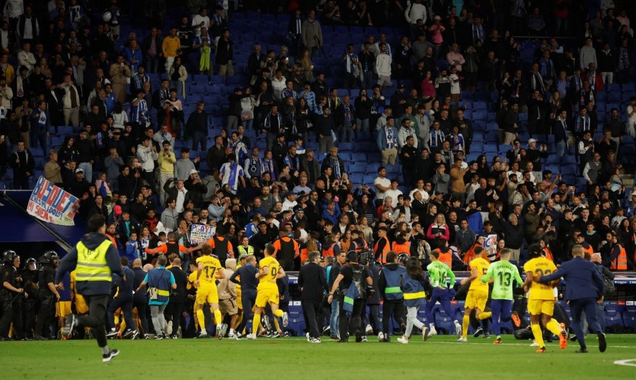 La Liga'nın 34. haftasında Barcelona, Espanyol'u deplasmanda 4-2 yenerek şampiyonluğu elde ederken, ezeli rakibinin sahasında kutlama yapmak isteyince ortalık karıştı. Espanyol taraftarlarının Barçalı oyunculara tepkisi çok sert oldu.