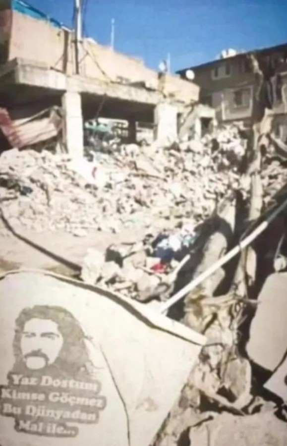 Sosyal medya hesabından sık sık yardım çağrısında bulunan Doğukan Manço, bir enkazın üzerinde babası Barış Manço'nun 'Sarı Çizmeli Mehmet Ağa' şarkısına ait "Yaz dostum kimse göçmez bu dünyadan mal ile" sözlerinin bulunduğu duvar yazısını takipçileriyle paylaştı.