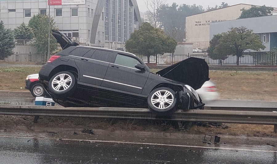 Edinilen bilgiye göre, M.E.D. idaresindeki 22 ABL 518 plakalı cip, yağmur sonrası kayganlaşan yolda seyir halindeyken kayarak bir anda refüjdeki bariyerlere çarptı.