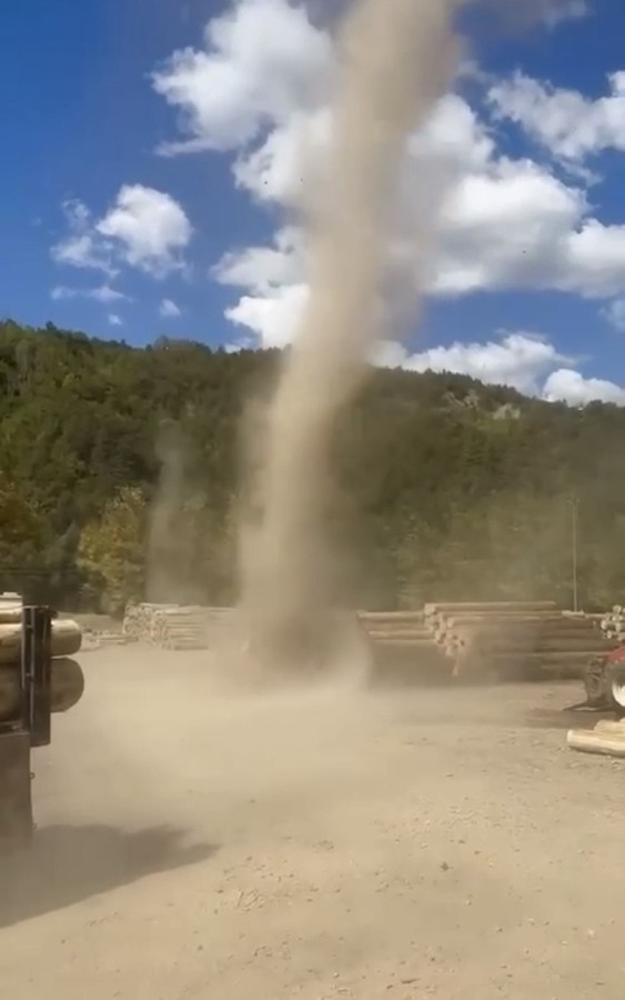 Bartın'ın Ulus ilçesinde bulunan orman deposundaki toprak alanda hortum çıktı. İşçilerin büyük panik yaşadığı hortum, cep telefonu ile kaydedildi.